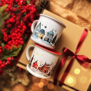 • Zestaw dwóch kubków w Świąteczne Domki! Nie znajdziesz bardziej świątecznego zestawu niż ten!  Kubki idealne na mikołajkowy prezent! Zestaw pięknie zapakowany, gotowy do wręczenia! Potrzebujesz upominku na Mikołajki lub pod choinkę? Wybierz ten wyjątkowy zestaw! Kubek to piękna i trwała pamiątka na długie lata! Wspaniale sprawdzi się jako prezent na rocznicę, urodziny czy dla Twojej Przyjaciółki!Kubki mają czerwony i granatowy…