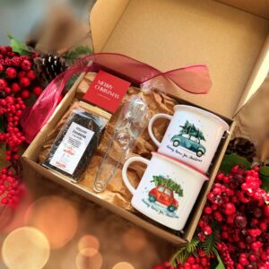 • Zestaw 2 KUBKI z herbatą i puszką piernikowych krówek