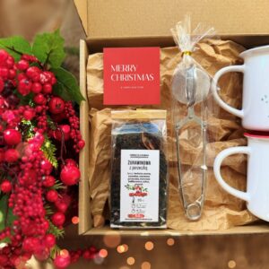 • Zestaw świąteczny 2 KUBKI z herbatą i zaparzaczem