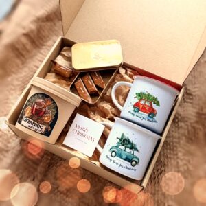 Zestaw 2 KUBKI z herbatą i puszką piernikowych krówek